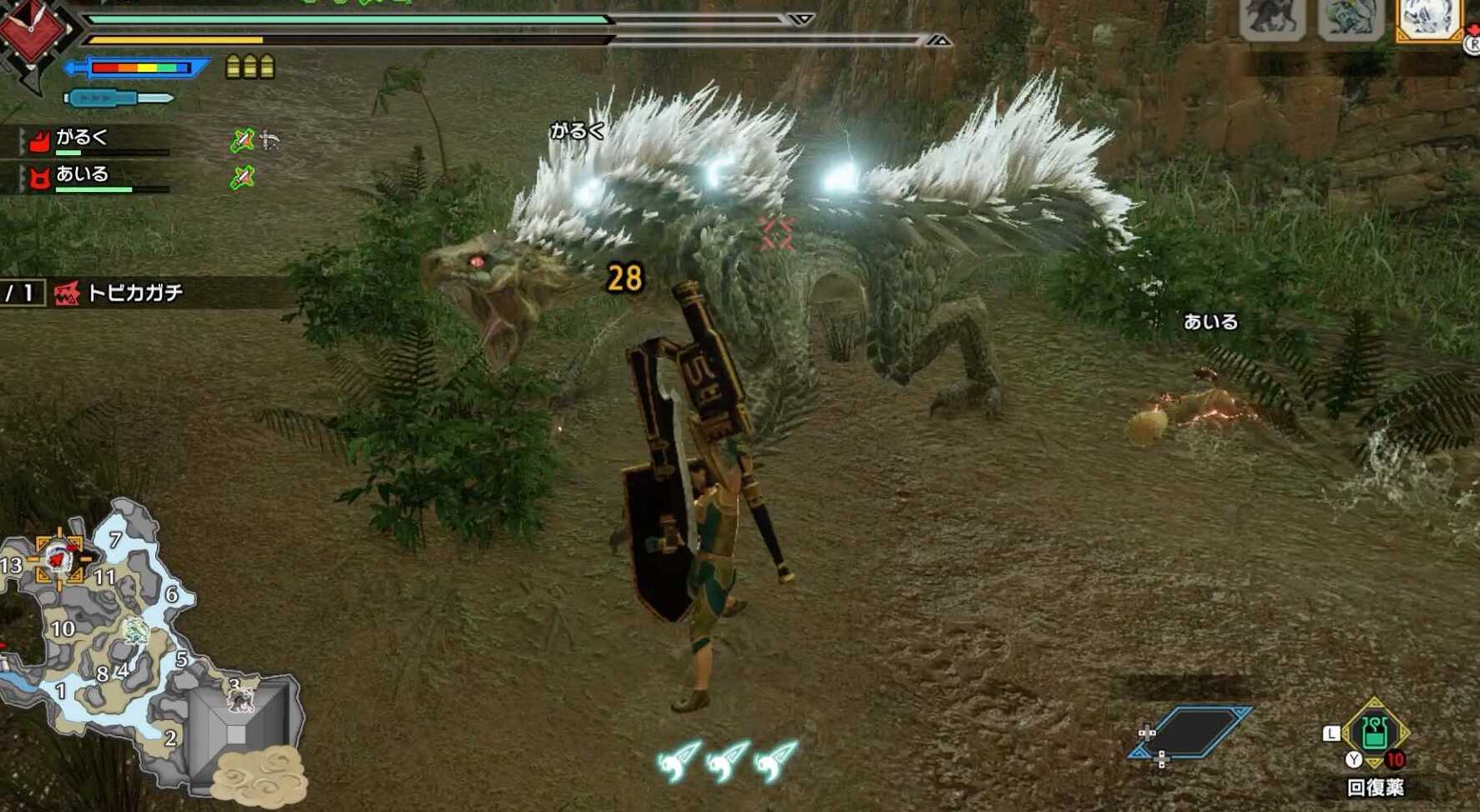 尻尾 斬 |打 トビカガチの行動 行動 距離 対策 (subIDが必要ない方は、今までと同じように名前とコメントだけ記入して下さい。) subID (英数字) PASS (英数字) 最新ニュース・配信情報 モンハンワールド×デビルメイクライ コラボ;・`д・´) 歩いてるときに轢かれたり、うっかり毒霧に突っ込んだだけで 簡単に死ねる。 ずっと尻尾斬ってたのに切れないし!(トドメも尻尾!) まったく勝った気がしません。 もう1回じゃぁぁ!!! ぐふぅトビカガチは耐性のついた属性がありません。 とくに「水」属性は効果があるので、討伐には水属性の武器を使用するとスムーズに狩猟することができます。 ④トビカガチの弱点部位 トビカガチは「尻尾」が弱点で、一番ダメージを与えられる部位になります。